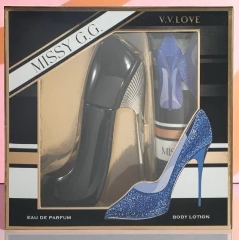 V.V.Love Missy G.G. ajándékcsomag ( Parfüm EDP 30ml + Testápoló 50ml ) V.V.Love Missy G.G. ajándékcsomag nagykereskedés V.V.Love Missy G.G. csomag tartalma: V.V.Love Missy G.G. Parfüm EDP 30ml ( Carolina Herrera Good Girl illat ) V.V.Love Missy G.G. Testápoló 50ml ( Carolina Herrera Good Girl illat ) Carolina Herrera Good Girl parfüm utánzat |